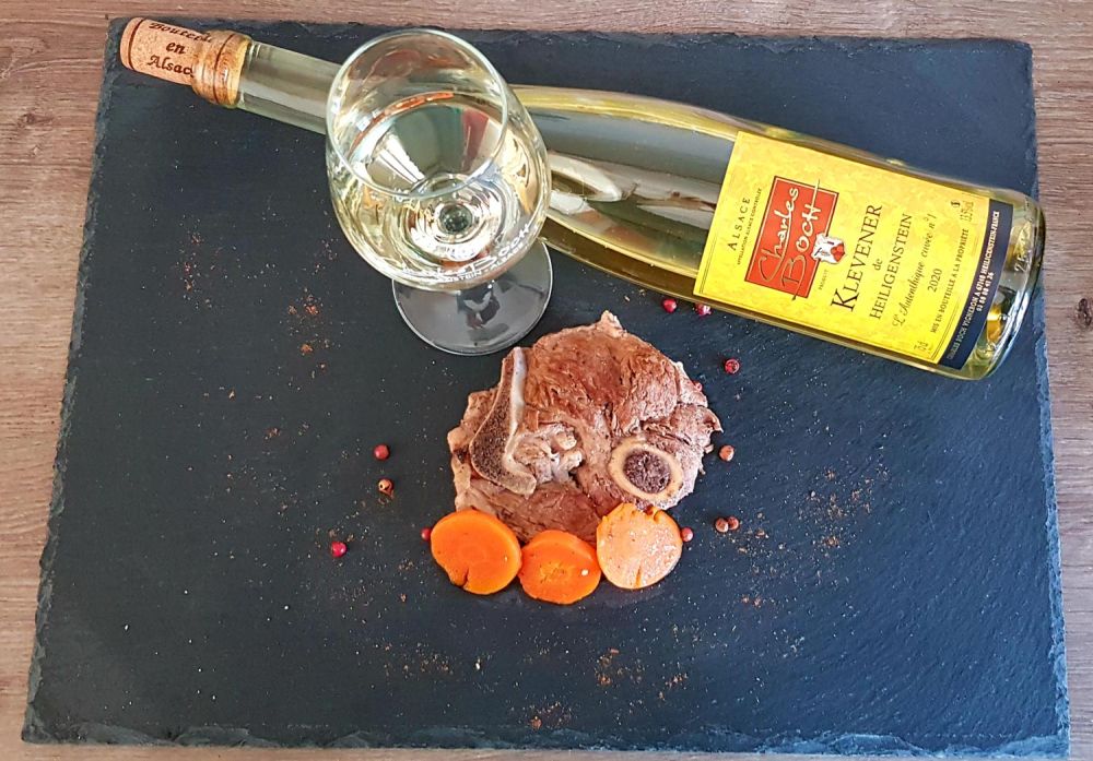 Et le vin dans tout ça ? Notre agneau ayant mijoté dans du Klevener de Heiligenstein L’Authentique Cuvée n°1 2020, c’est évidemment ce même vin que je vous conseille pour accompagner notre met. On joue ici la carte du sucré salé et pour cela rien de mieux que le moelleux et les arômes de fruits confits comme le coing de cette cuvée. Pour ceux qui préféreraient un vin plus sec, tournez-vous alors vers le Klevener de Heiligenstein Cuvée Tentation afin de retrouver le fruité et la fraîcheur caractéristiques du cépage mais avec 20g de sucre résiduel en moins !