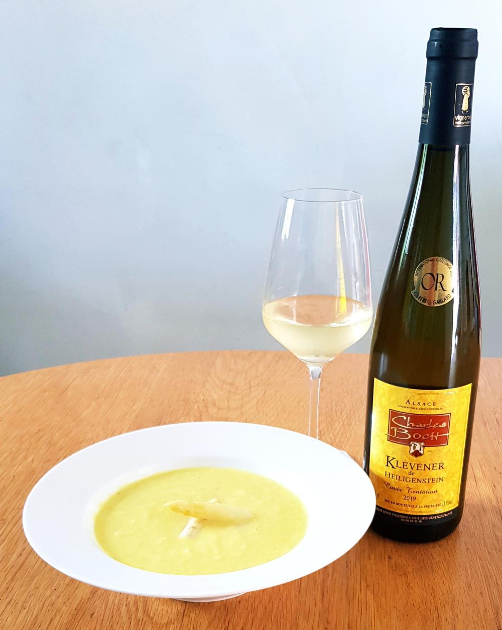 Crème d’asperges blanches au curcuma accompagnée de notre Klevener de Heiligenstein 2019 Cuvée Tentation