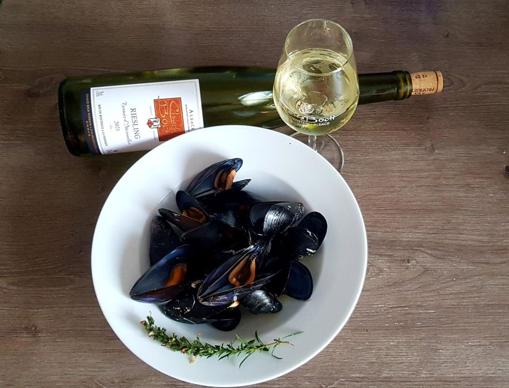 L’Alsace est une alliée de taille de la Bretagne et la Normandie pour ce qui est des accords mets et vins. En effet, nos vins secs et fruités font la part belle aux saveurs iodées des fruits de mer. Ici, je vous propose une recette de moules marinières au Riesling.
